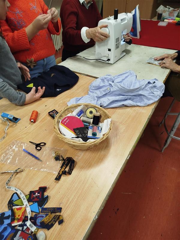 Le café couture est un rendez-vous convivial animé par deux bénévoles, Christelle et Céline. Ouvert à tous, cet atelier permet à chacun de venir apprendre à réparer ses vêtements, ou à partager ses connaissances en couture avec les autres participants.